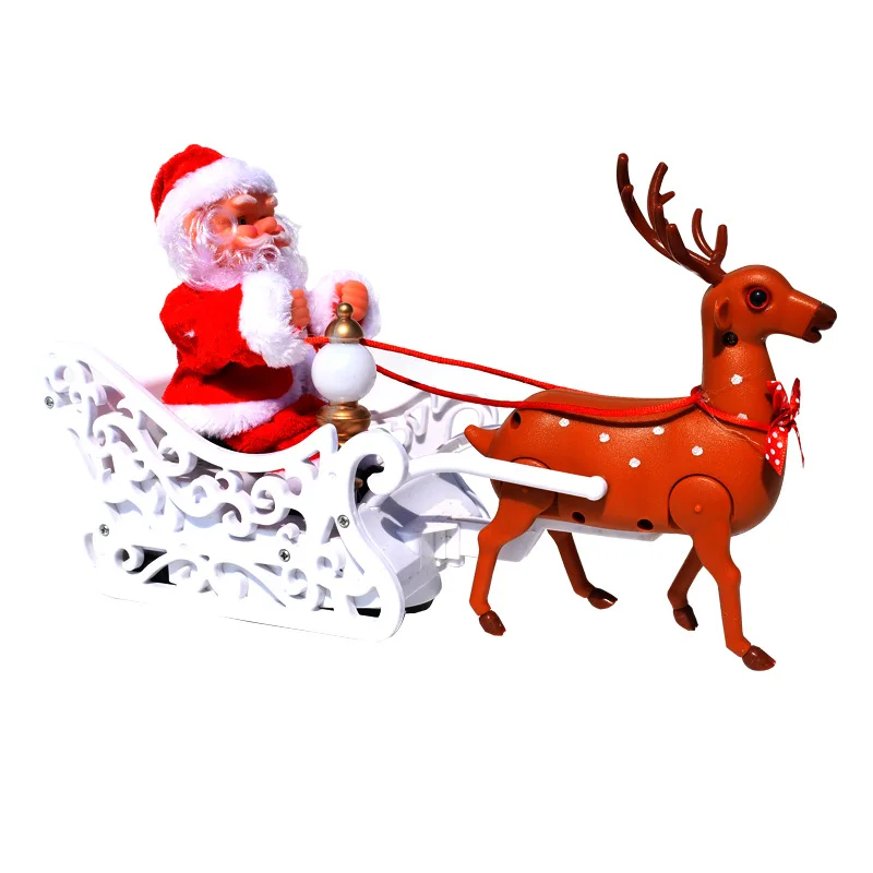 New Electric Santa Claus Deer Cart Music Doll Christmas Decorations Children Toys Kids Gift Collect