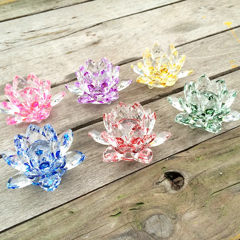 Souvenir 100mm Colorful Crystal Lotus Flower Glass Crafts Natural Stones&Minerals Home Wedding Deco