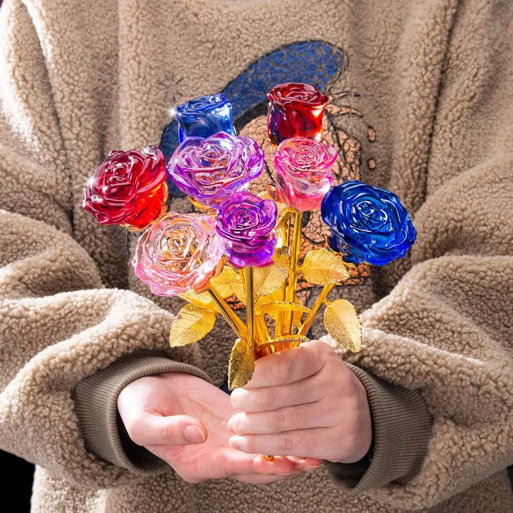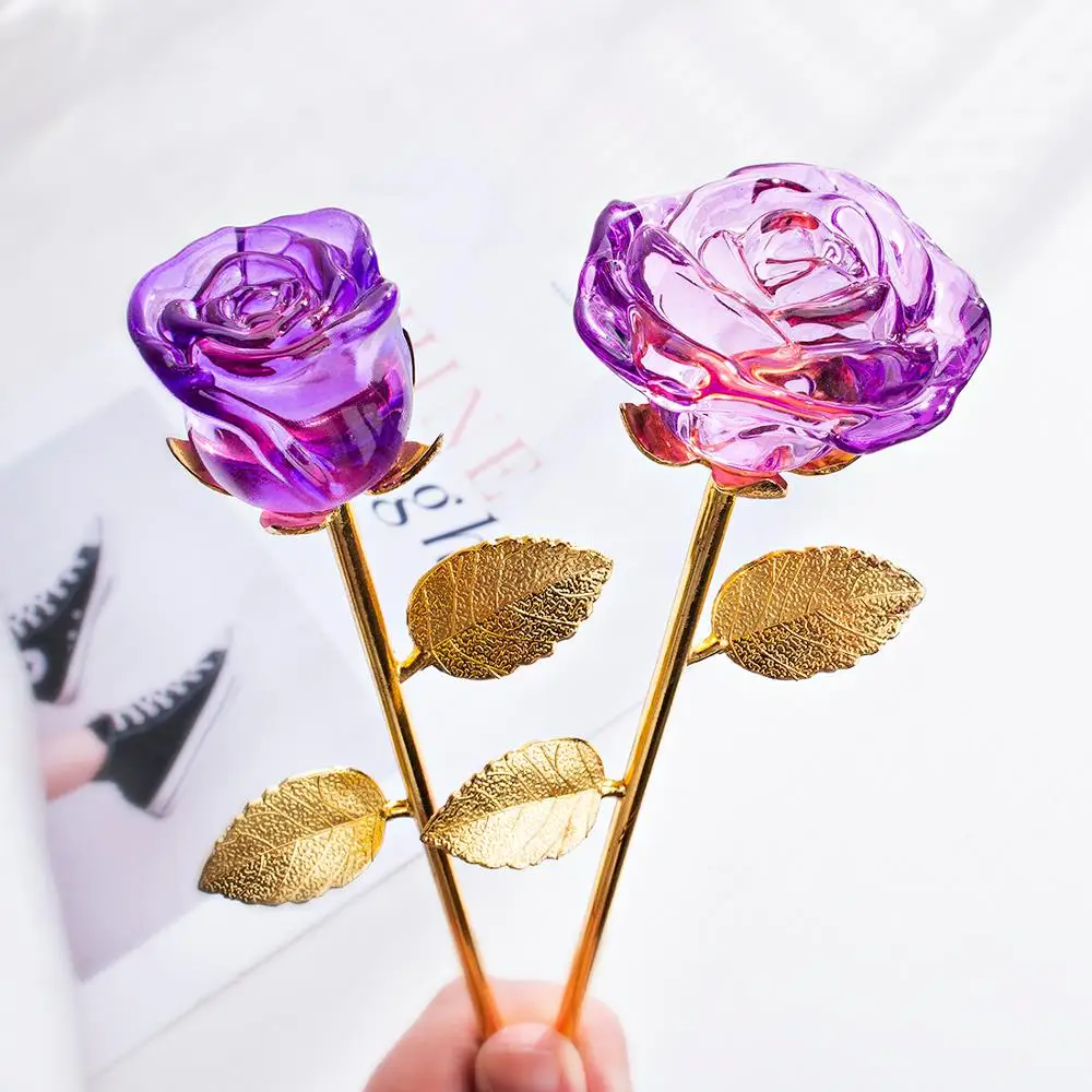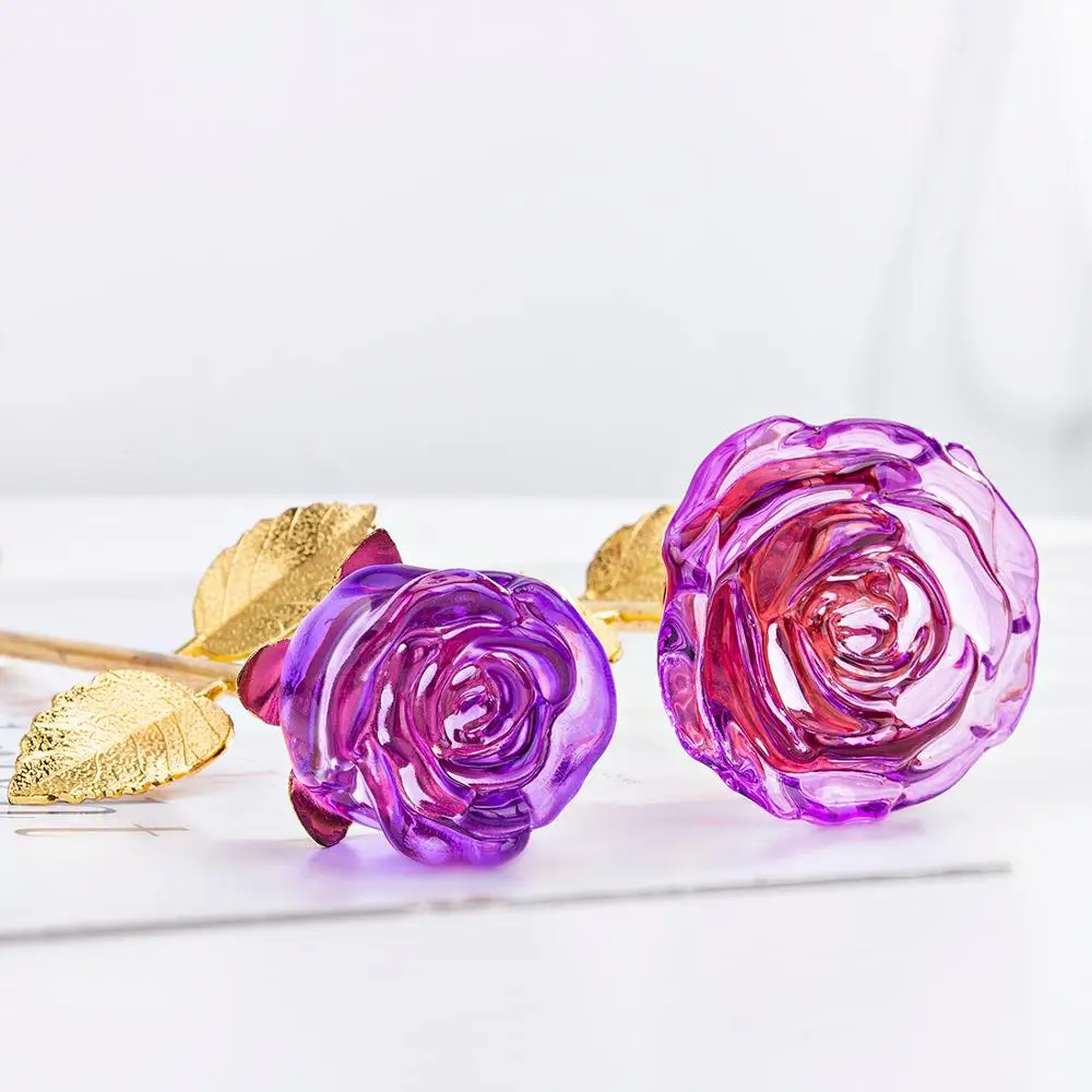 TOP H&D Pack of 2 Crystal Glass Rose Flower Figurines Wedding Valentine's Day Favors Souvenir Collectib