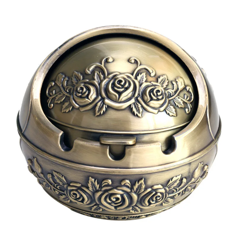HIGH QUALITY Creative Retro Ashtray Home Office Covered Gift Souvenir Ashtray Rose Flower Ashtrays Spherical Orn