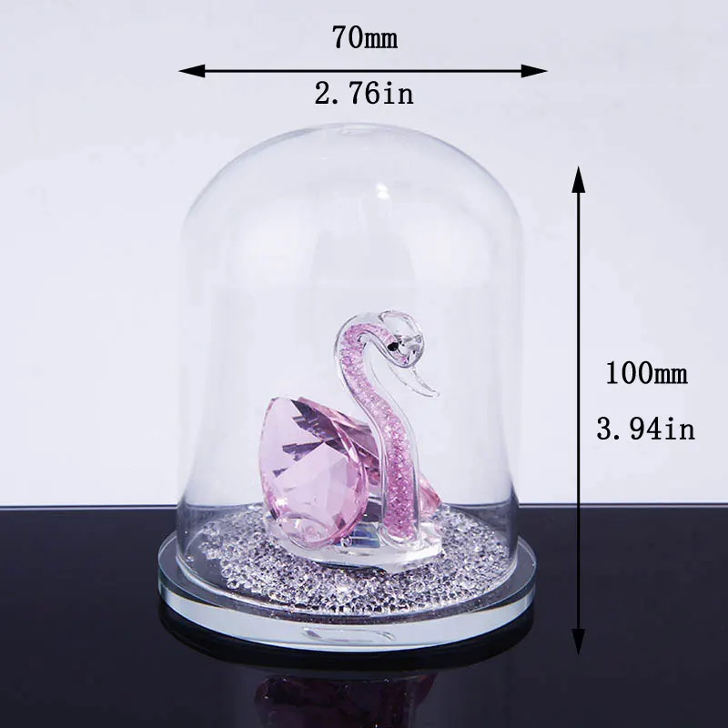 Crystal Pink Swan Animal Figurines Ornament With Glass Bell Glass Paperweight Home & Wedding Decor