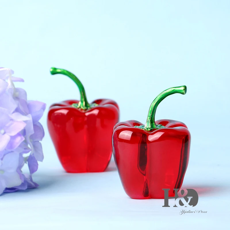 TOP H&D 2.6'' Crystal Chili Figure Paperweight Ornament Feng Shui Decor Collection Figurines Home Weddi